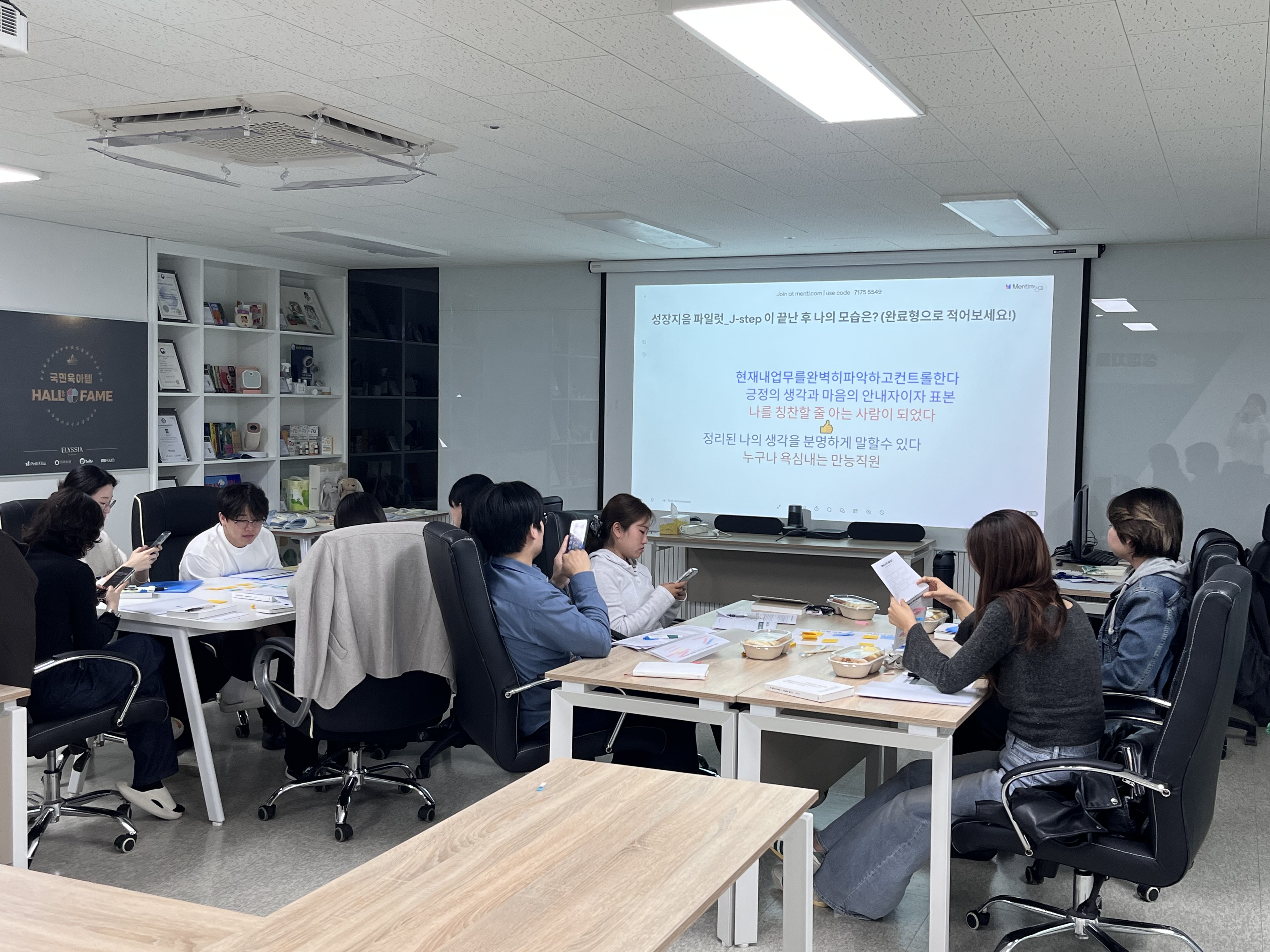 첫 시범 운영하는 "j-step"(자기주도 첫걸음)은 사원~대리급 대상으로 기획 되었고, 참여자들의 학습의지가 엘리시아 전체로 확산되기를 기대하고 있습니다👍 |