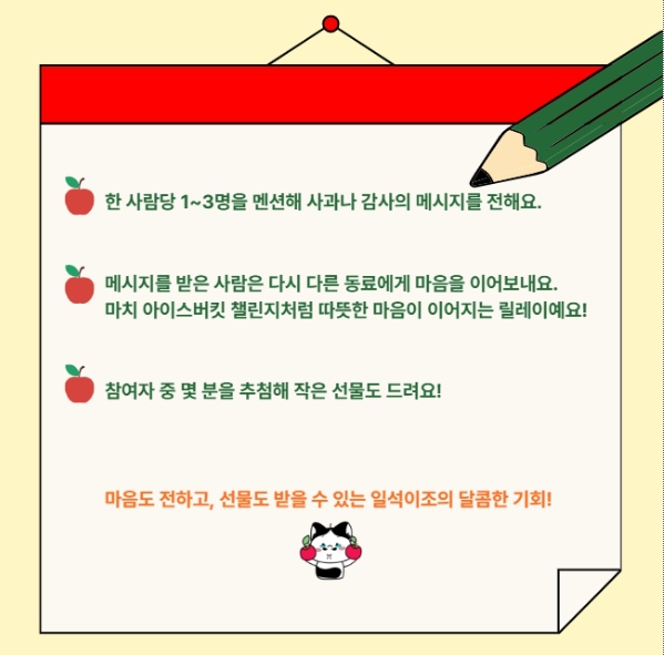 지난 호 깜짝 진행 된 도담도담 사과데이 릴레이 이벤트에 많은 분들이 참여 해 주셨습니다.
